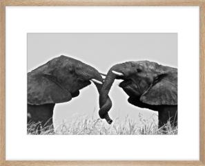 Two young cousins meet again - time for a hug "elephant style". Entangled, fraternal, interdependent in their force of life, majestic, and ferocious yet so tender.