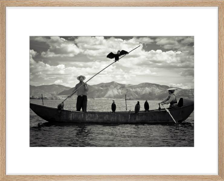 Cormorant fishing is a traditional fishing method in which fishermen use trained aquatic shags to fish in rivers, in this case in Southern China. To control the birds, the fishermen tie a snare around the bird's throat to prevent it from swallowing larger fish, which are held in their throat, while it can still swallow smaller fish. When a cormorant has caught a fish, the fisherman brings the bird back to the boat and has the bird spit it up.