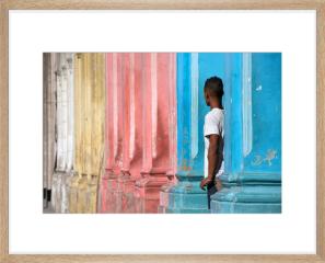 A young Cuban man stands tall amid the brightly coloured pillars from several neighbouring Colonial houses in the historic city centre of Havana. Since Cuba used to be a key transshipment point between the new world and the old world, many riches were brought to and through Havana by colonialists. As a result, it was the most heavily fortified city in the Americas and the influence from different styles and cultures can be seen in its colonial architecture, with a diverse range of architectural styles, from Moorish, Spanish and Italian to Greek and Roman.
