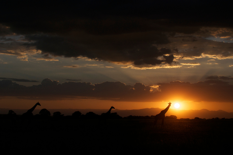 The great ride. A "tower of giraffes" wears its name so well. These hurled profiles striding ever so beautifully towards the light become a magnificent part of the scenery.