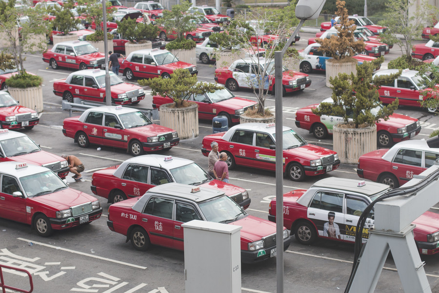 At Hong Kong International Airport, these red taxis are patiently waiting for a new wave of daily visitors to be taken to the centre of one of the largest and most bustling hubs in all of Asia.