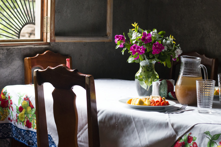 Created in 2005, the association Puesta del Sol is ran by women representing 17 peasant families in the community of La Paloma, on the volcanic island of Ometepe at the heart of Lake Nicaragua. Most of its members are engaged in traditional agricultural activities. Today they offer tourism services as an alternative means of community development in a spirit of sustainable and environmental conservation. Carla and her family are some of those inhabitants who welcome foreigners into their home for a truly local experience. This breakfast table is like a still life painting from the late 16th century.