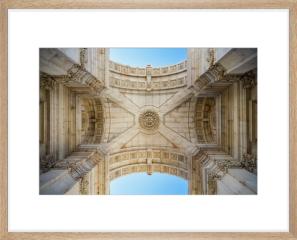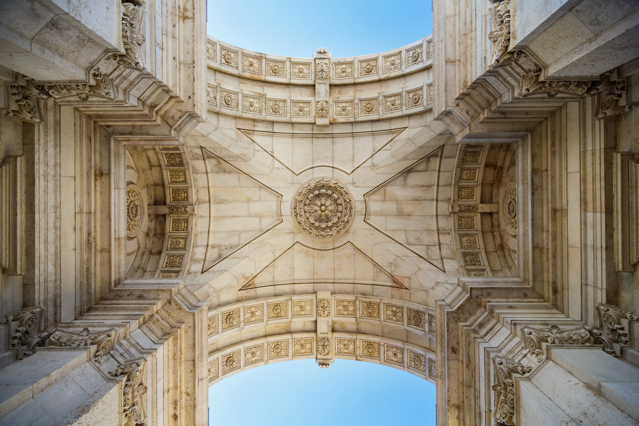 The Rua Augusta Arch is a triumphal monument at the end of the Augusta Street in Lisbon, Portugal. It was built to commemorate the reconstruction of the city after the 1755 earthquake. The statues on top, by French sculptor Célestin Anatole Calmels, represent Glory rewarding Valor and Genius.