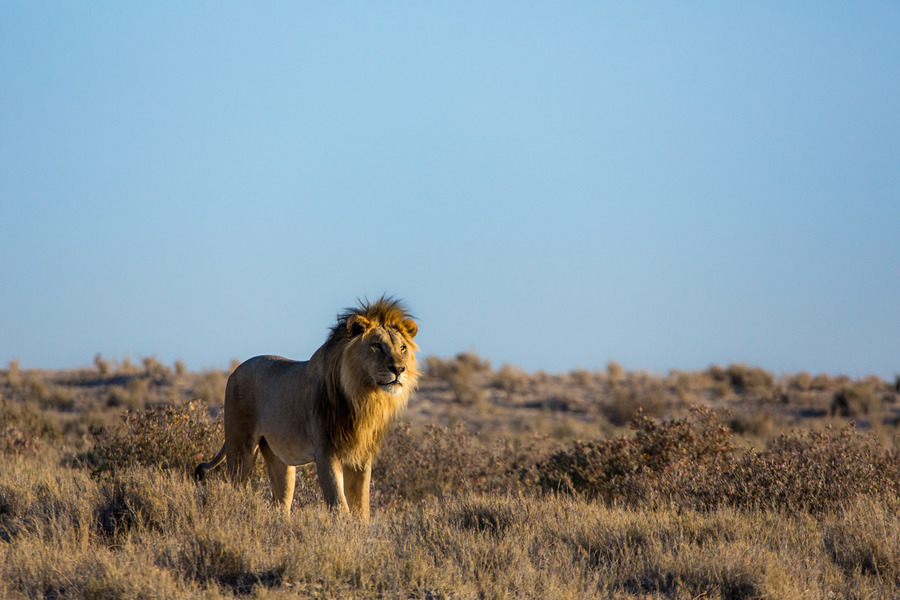 Etosha National Park in northwestern Namibia, which literally translates as “the great white place”, is home to many lion prides. This majestic male lion was on an early morning patrol near the Okondeka waterhole.