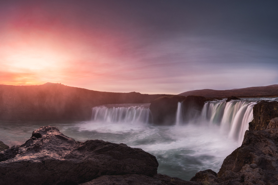 The Goðafoss is one of the most spectacular waterfalls in Iceland, it literally means “waterfall of the Gods” in Icelandic. The water of the river Skjálfandafljót falls from a height of 12 meters over a width of 30 meters.