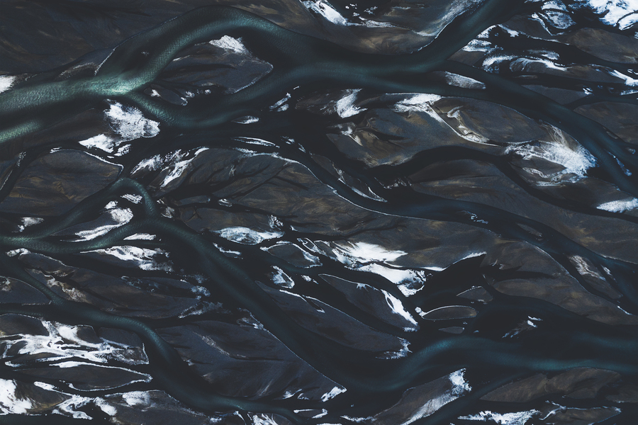 This abstract painting is actually a very different and rarely seen point of view of the beauty of Icelandic nature: it’s a satellite view of the delta of a river leading to the sea.